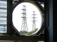 鉄塔2基に赤白の塔があるこの変電所。