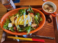 QRコードで注文人気No. 1ハンバーグのランチセット前菜もうまいごちそうさまでした。