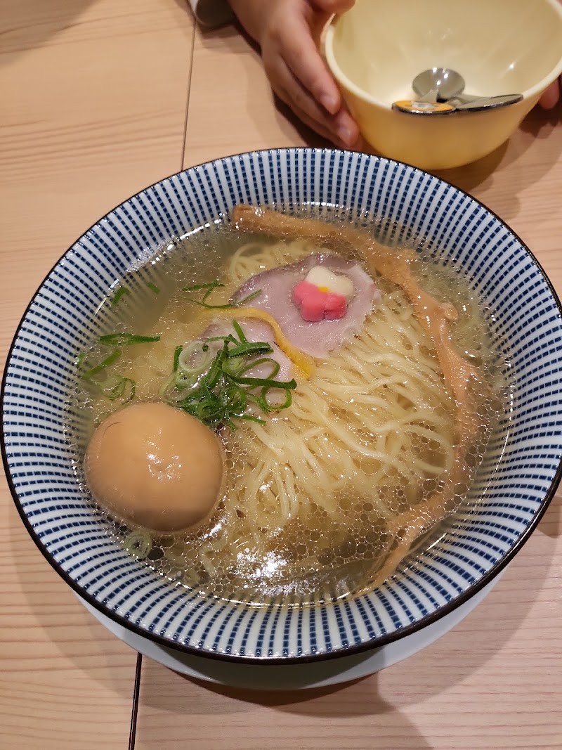 平日の13時過ぎに入店。グランデュオ東館3階フロアで、この店以外はウェイティングの列あり。店内の突き当り右奥にテーブル席が2卓あります。「鯛塩らぁ麺」860円を注文。3分で着丼。塩分強めの鯛出汁スープ。卓上の山椒での味変がお勧め、入れ過ぎに注意、痺れますよ。