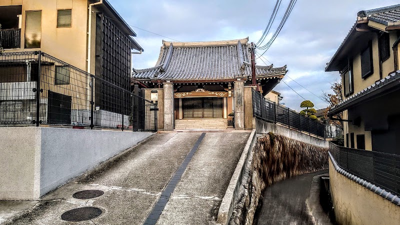 西宮越水にあるお寺、越水地区は細い道が多数見られる。
