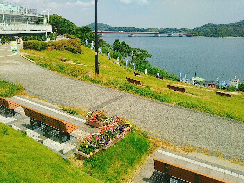 浜名湖SAの芝生公園からの湖畔に設営された遊覧船乗り場。