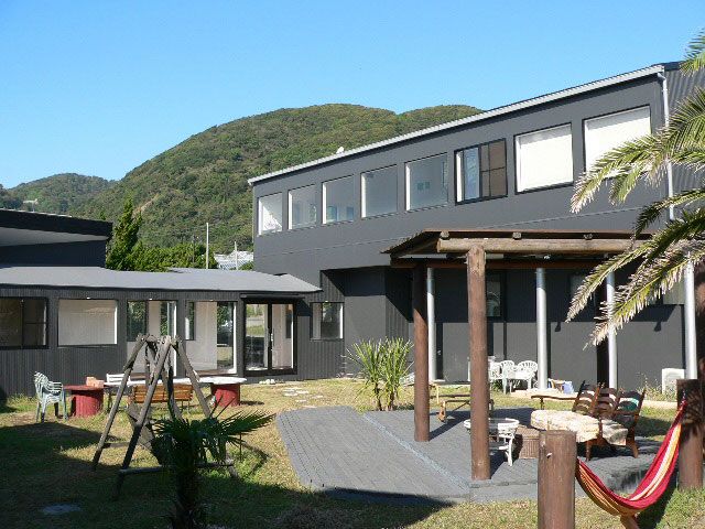 正月休みに利用しました。夕日が沈むのが部屋からも綺麗に見えてとても良いロケーションでした。いくつかある部屋も位置的に全て見えると思います。更に屋上からの景色も最高で寒かったけど暗くなるまで魅入ってしまう程。一つだけ気になる点としては、部屋のお風呂とトイレがユニットバスというところだけど、それも共有バスと共有トイレがいくつかありそんなに気にならなかったです。共有トイレにはシャワートイレが付いててそこを使ってたし、共有バスの一つに岩風呂があり、床と風呂桶に切り岩が貼ってある感じのお風呂で少し怪我しないか心配したけど、24時間お湯を沸かしててくれてて何度も入りました。4人家族で利用したのですがベッドが広めのセミダブル?が4つあって皆ゆったり休めました。朝食は洋風でお洒落だし美味しかったです。あと、子供達は食堂にあったサッカーのボードゲームにハマって大はしゃぎでした。歩いてすぐ海に行けて、綺麗な砂浜でシーグラスや珍しい貝殻なんかを拾ったりしました。