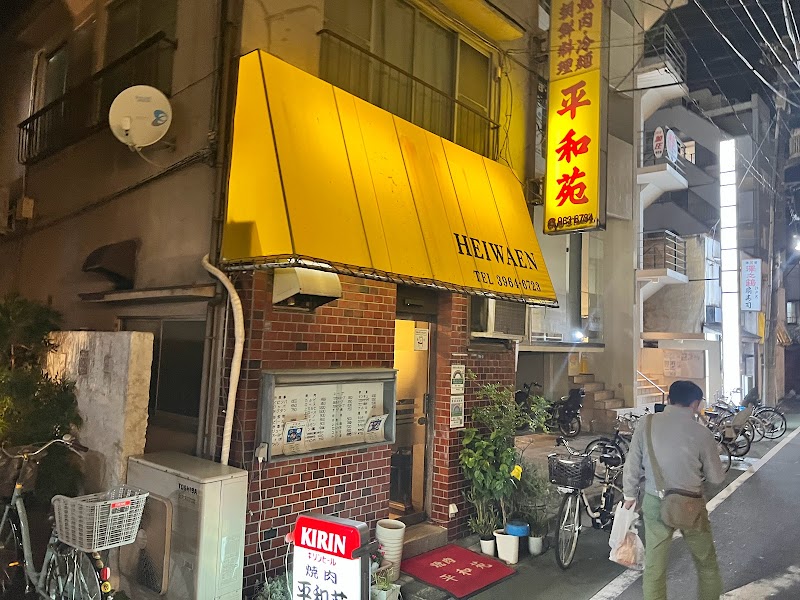 大山駅の北口を出て徒歩数十秒、昭和感満載の焼肉屋さん平和苑さんに初訪問してきました。前から気になってたんですが、なかなか入ることが出来ずやっと初訪問となりましたw店内はテーブル席が2席、座敷のテーブルが2席、ママさんが1人でまわしてるお店です。テーブルにメニュー表はなく壁にメニューが貼り付けられています。瓶ビール、ハラミ、タン塩、カルビスープを注文。鉄板は関西の焼肉屋さんにおおいロースター式の鉄板。僕はこの鉄板が大好きなんです♪お肉は臭みもなくて柔らかかったです。特にホルモンが超柔らかくて美味しかった!お肉の好き嫌いは個人差があるのでぜひ食べてもらいたいと思います。スープも美味しかったです!しっかり出汁も出てるし旨味が良かった!カルビスープには大きめの骨つきカルビのお肉が入っていて食べ応えも十分。すごい柔らかかったです。他のお客さんは皆さん常連さんでママさんの人徳があるんだなと思いました。初見の僕たちにも優しく接してくれて嬉しかったです。大山には色々と焼肉屋さんがありますが、こういうアットホームな焼肉屋さんも僕は好きです。