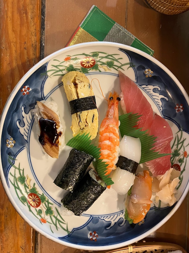 2023年5月に訪問。昔ながらのこじんまりとした旨い寿司屋。外観・内装に年季が入っており、初見では入りにくいが、Googleのクチコミを見て訪問。カウンターが何故か斜めになっている。笑寿司・赤だし・ゼリーのランチで800円。湯呑みが大きい。店内に私一人だったので、大将と少しお話ししておあいそ。大将が60年以上前に別の場所で創業、昭和52年に現在の店舗に移転したらしい。仕事場が近いのでまた訪問します。