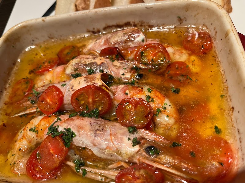エビのアヒージョがとても美味しかったです大きなエビが入っていて殻が剥いてあったので食べやすかった🦐バケットは別で追加方式🍞明太子パスタは結構ピリッと辛いのでお子さんには向いてなさそう…イカゲソの唐揚げは味が染み込んでいてサクッとしててとても美味しかったです✰駐車場も結構あるので良き👍
