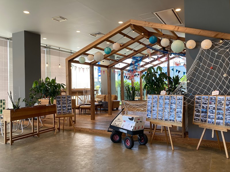 アウトドア風のお洒落な内装で、お子様が遊べるキッズスペースも完備しています。