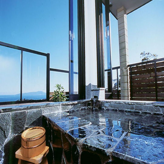 各客室には露天風呂があり、風呂からの景色が非常に素晴らしいです。