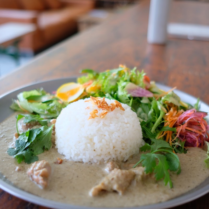 宿でなく、食事のみしてきました。カフェとしてされてる2階のスペースです。注文はスマホでやる方式。ここは、いろんなカレーがあるけどわたしは今日はグリーンカレー。ココナッツミルク濃いめで優しいエスニック。こういうのもいい。友人はバターチキンカレー。ご飯や野菜の量も選べたり、バタチキは目玉焼き追加できたり、グリーンカレーは追いパクチーできたり楽しい。(2人ともご飯を最小の150gにしたので見た目こんなふうになってます)ふだんはコーヒーはなくてソフトドリンクと紅茶なんだけど、日曜日、祝日だけ近くの「喫茶アナログ研究室」の出張が来られていてラッキー🤞コーヒーおいしい。秋の散歩にまたアナログ研究室の方にもふらり寄ってみたい。