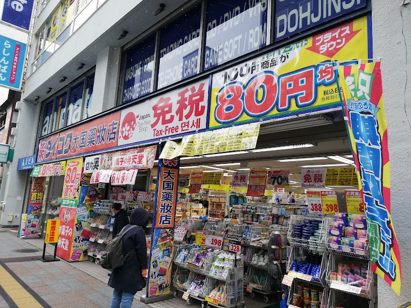 激安商品もあるダイコクドラックストアーです!街の真ん中にあるので、外国人も多数来ますね!薬品はもちろん、食品・飲み物・雑貨的な物・百均商品もあります!
