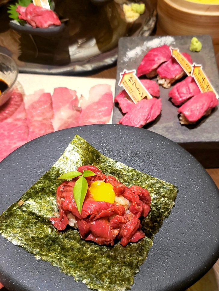肉刺し等は低温加熱調理されており衛生的にも安心レバ刺(風)は、ねっとりとクリーミィな味わいで生よりこちらのほうが好みでした注文後に低温加熱調理するので少し時間がかかります。