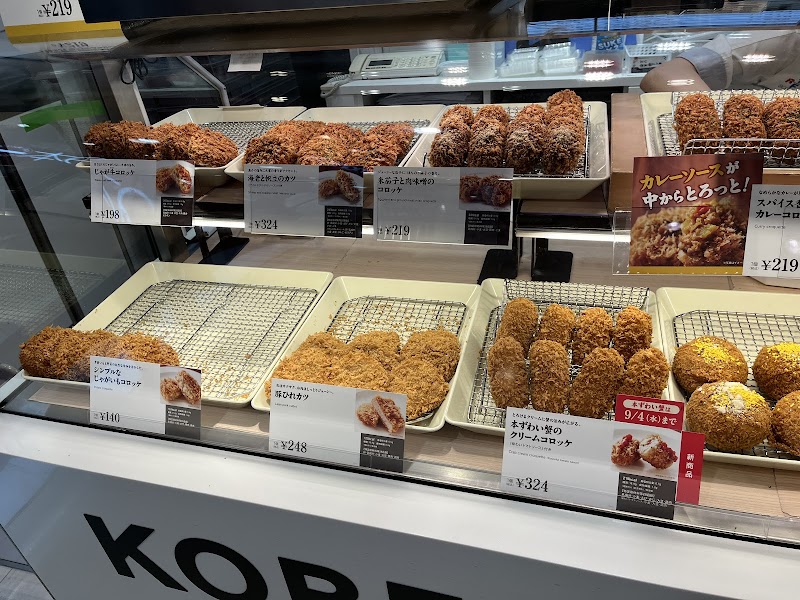 久しぶり〜❣️🤗神戸コロッケ図り売り!宮城の時は良く買ってましたよ季節の野菜🥦🥬を使ってのサラダ🥗 マリネなど魚🐟 お肉を使っててアレンジが好き^^ 今回は生ハムマッシュルーム🍄サラダ🥗炙り帆立グレープフルーツ和え❣️ 大好き💕値段は安いものから高いのは高い間違いない美味しいです揚げ物やお弁当🍱なども扱ってますね!