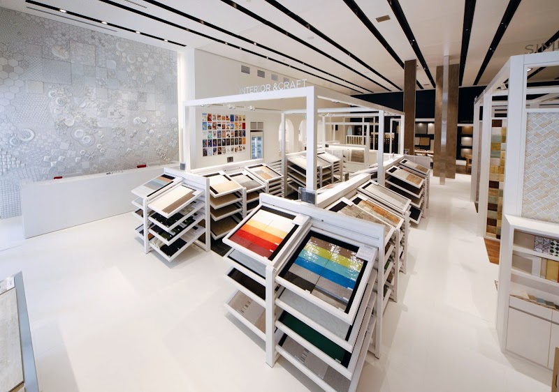 タイルの美術館みたいなショールーム広いスペースにセンス良くデスプレイされ関連書物も見れます。