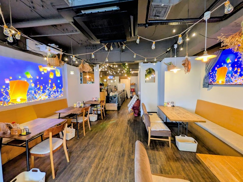 ランチには90分制のサラダバー、ドリンクバー、アイスバーがついています。健康志向の人には嬉しいサラダバーで、お野菜を沢山摂れます。ランチメニューはオムライスか生パスタがあり、オムライスのソースは4種類から選べます。今回はトマトソースにしましたが、物凄い量のソースにとろとろなオムライスが沈んでて食べ応え抜群でした。女性には多いかもしれないです!お子様ランチもあり、子連れの方でも気軽に来られるカフェです。店内にはドライフラワーが吊り下げられております、モダンな雰囲気です。店員さんも明るい接客で全体的に雰囲気が良く、くつろげました。
