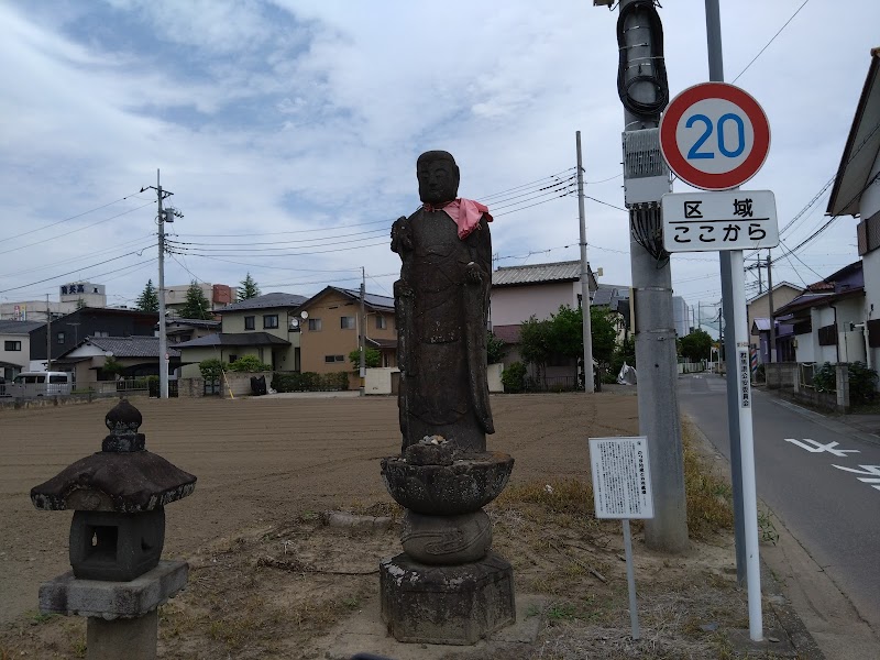こちらは上新田集落の北入口に鎮座する、かつぎ地蔵です。南入口のもう一体は、福徳寺の手前(上新田町1270-1)に鎮座しています。