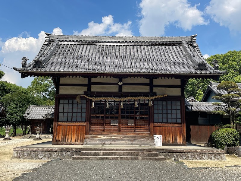 みよし市の西南端の集落、福田の氏神さまで、三好との境に祀られています。元禄2(1689)年に勧請され、神社の北と東は工場ですが、25本以上の大楠に囲まれた緑の濃い神社です。遠くから見ても、その鎮守の森はよく目立ち、いかにも神域と言う風情を漂わせています。かつてはクスノキの他にもヒノキやスギの大木がたくさんあったそうですが、1959年の伊勢湾台風でほとんど倒れてしまったそうです。駐車場は神社の東側の道路沿いにあります。