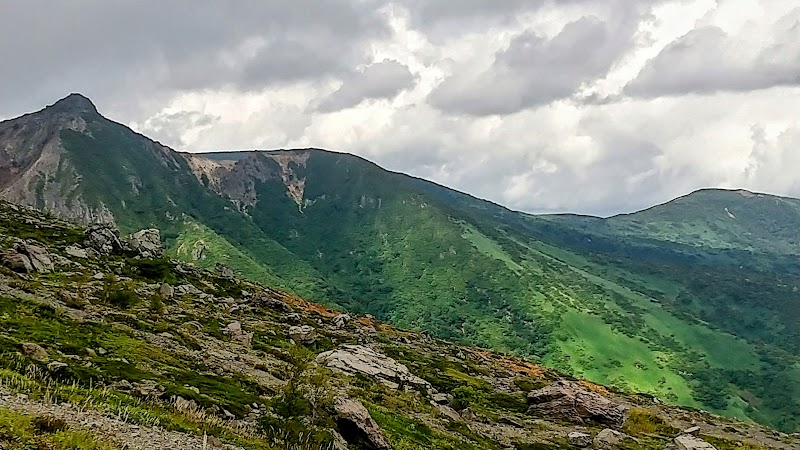茶臼岳山頂へ向かう途中に位置する大岩は、登山者にとっての目印です。