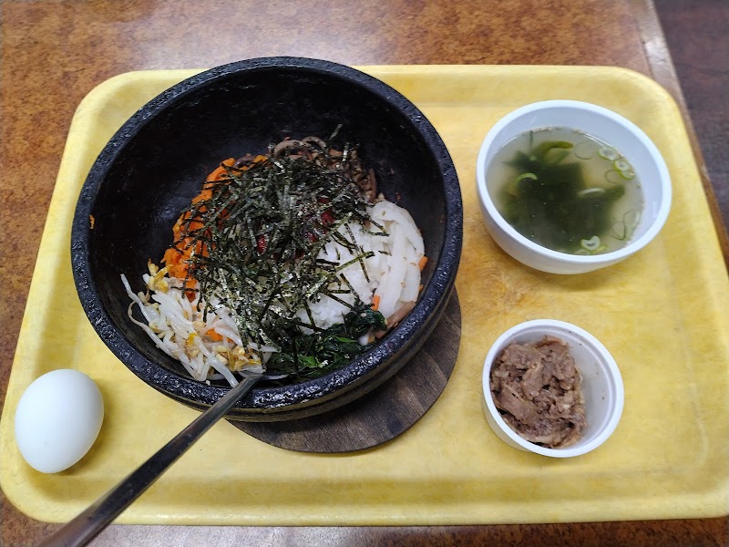 懐かしくなり十数年ぶりに行って来ました。建物や設備はやはり古いですが、お店もお客も活気があって懐かしい気分になりました。注文はカルビー付きビビンバを。カリカリお焦げとゴロゴロと食べ応えのある具材の数々。コチュジャンのピリリとした辛さがたまりません!卵はお一つ無料で頂けますので辛すぎるのが苦手な人にもお優しいです。食堂内は隣接する店で買える寿司や焼き鳥などもそのまま持ち込んで食べれるみたいなんで、次は寿司あたり行ってみたいです!駐車場は車と歩行者で混み合うので行かれるさいにはご注意下さい。