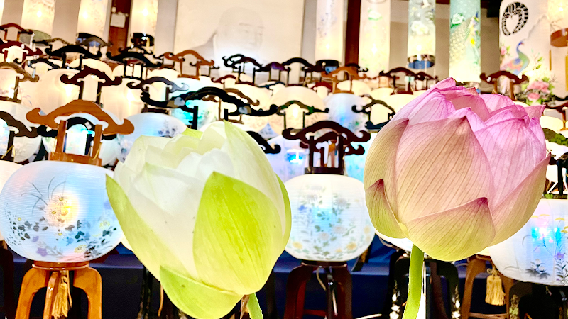 R.4.7.8 訪問蓮の花が見頃です。たくさんの白蓮がきれいに咲き揃い見応えがあります。訪問時、本堂ではご住職と檀家さんによる読経中で提灯の展示は入口より拝見させて頂きました。夜間に見るとまた一段ときれいに見ることが出来そうです❇️訪問前に電話にて蓮の花の咲き具合等お尋ねしましたが、ご住職が丁寧に感じよく対応して下さいました。