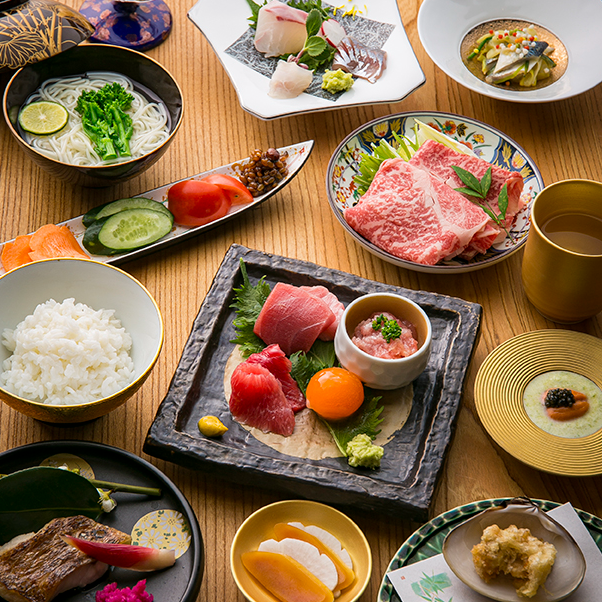 八寸や長崎本マグロ丼など、見た目にも美しい和食を堪能できます。