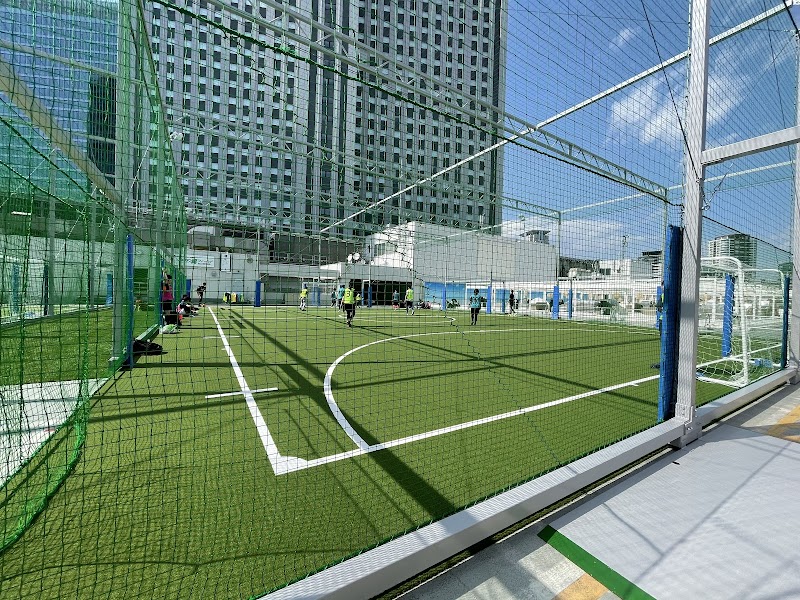 てんしばのコートより新しいので人工芝がつきにくくて嬉しいです。またビル風だと思うんですがよく空気が流れているので、暑い時も気持ちよくボールを蹴れます。2面のコートにネットがしっかりと貼ってあります。コートの向きが違うので大きな1面コートにはならないため、少し狭いフットサルコート専用という感じです。アクセスは大阪駅からすぐ、ヨドバシのエレベーターで直行できるリンクス梅田の13階なのでとても便利です。シャワーは3つあります。レンタルシューズもあるので、手ぶらでもギリ大丈夫な気がします。スタッフはとても親切なので気軽に行けていいところです。