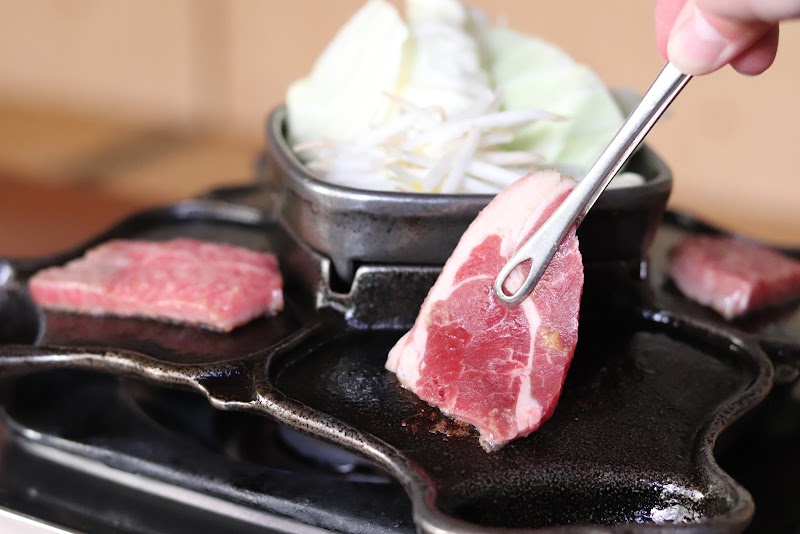義経鍋、兜を鍋にしたという特徴的な形で真ん中に野菜を入れて、周りで肉を焼き、油を溜めるツボがついた面白い形をしてる。肉は厚め、ジンギスカンも和牛も美味しかった。半ライスは普通のご飯一膳相当ある。煙も床の油で滑るのも、覚悟して汚れてもいい服でくるのがベスト。ちなみに肉を返した時に油はねして火傷することもあるので、そこだけが注意すべきこと。子供にも優しく地元民が多い。帰り際にソフトクリームをもらった。塩尻東山峠の東山食堂の支店になります。