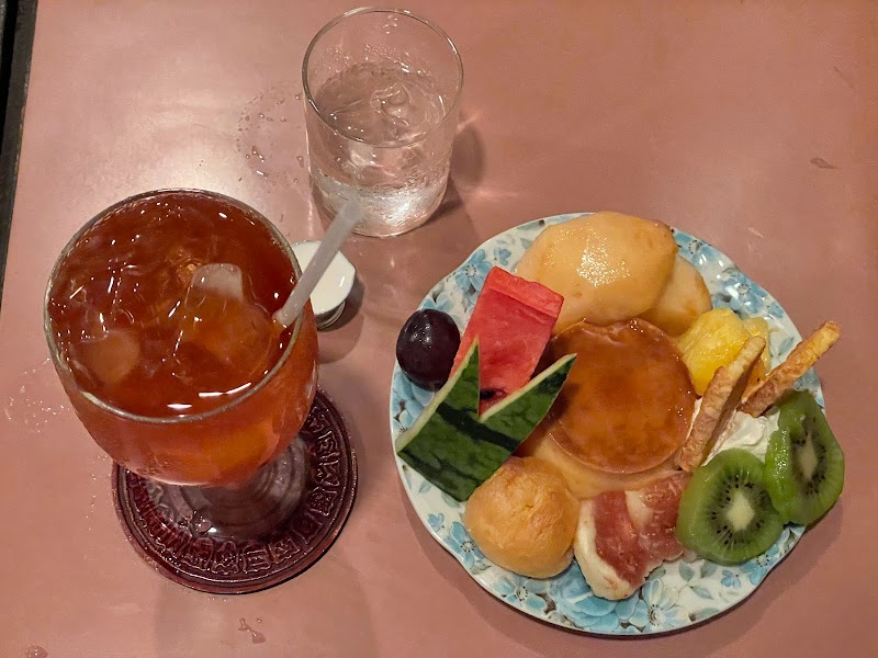 昔ながらの雰囲気を残す素敵なジャズ喫茶。小さな純喫茶と思いきや室内は奥行きがあり静謐な情景でした。ドリンク込のプリンセットを注文。1000円ほどしますが、プリンの周りの果物の豪華さを見て納得。マンゴーからスイカ、オリジナルのいちごジャムまで瑞々しい果物たちがてんこ盛りです。むしろ安すぎる位では…!?味も素晴らしかったです。こういった喫茶には珍しく完全禁煙なのも禁煙者としては嬉しいポイント。1点、店内の照明が暗め(雰囲気ある感じ)なので、書き物や読み物はあまりできないかもしれません。