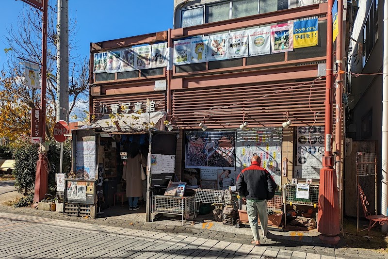 写真館と大きな看板が出ていますが、正面にはあの花のポスターが大量に掲示され、店先には石や古銭が展示され、お茶の販売もされています。非常に興味をそそられる写真館です・・