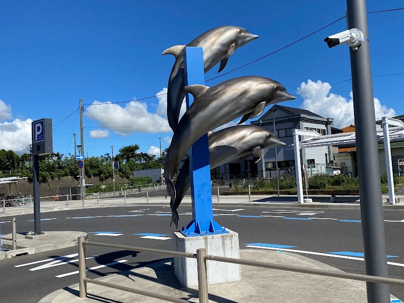 大洗駅のイルカ像(アクアワールド茨城県大洗水族館) |