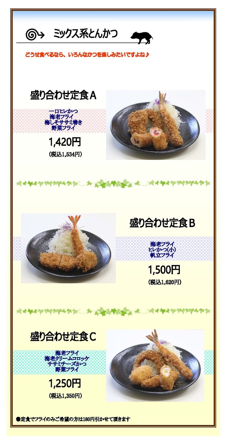 駅直結のイオンモールに入っていて行きやすい。とんかつは柔らかくて美味しかった。ごはん、お味噌汁、キャベツはおかわり出来て、ドレッシングも3種類ボトルでサーブされ味変出来た。
