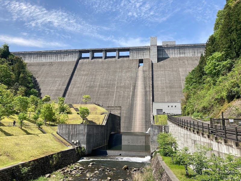 国道212号線から10分ほど入り込んだところにある重力式のダムです。管理事務所でダムカードと基礎掘削面地質図カードをもらえます。ダムの上は徒歩でのみ通行できます。